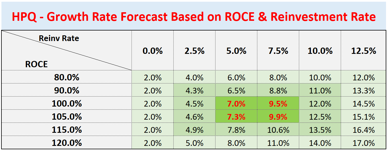 All told, HPQ on average spent only about 13% of operating cash flow on maintenance CAPEX in recent years, about 20% on dividends, and has been maintaining a reinvestment rate between 5% to 7.5% in recent years.