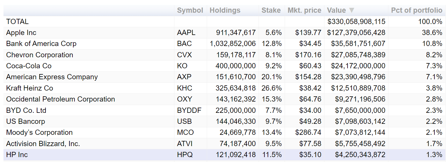 Source: cnbc.com/berkshire-hathaway-portfolio/